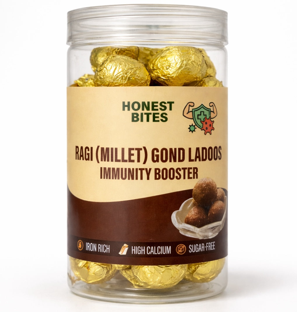 A nourishing ladoo made with ragi (finger millet) and gond. Deeply warming, wholesome, and rooted in traditional Indian kitchens. This immunity booster ladoo is crafted to support everyday strength, resilience, and nourishment for the whole family.